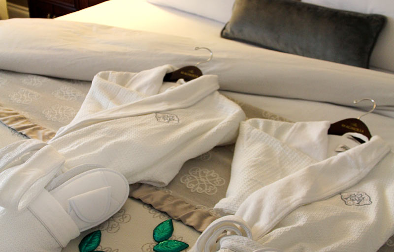 Evening turn down service with bathrobes laid out, ice in the bucket and chocolates by the bed